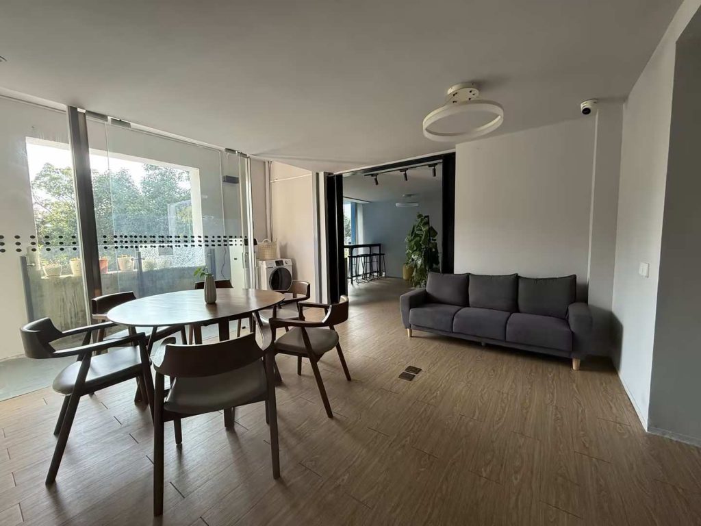 宿舍另設有公共活動區域,配置沙發、茶水間等基本的生活設施,為學生之間的交流提供了場所,鼓勵學生在此交流互動、共同成長。老師也會定期組織學生開展宿舍活動,豐富宿舍生活。