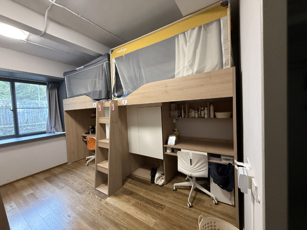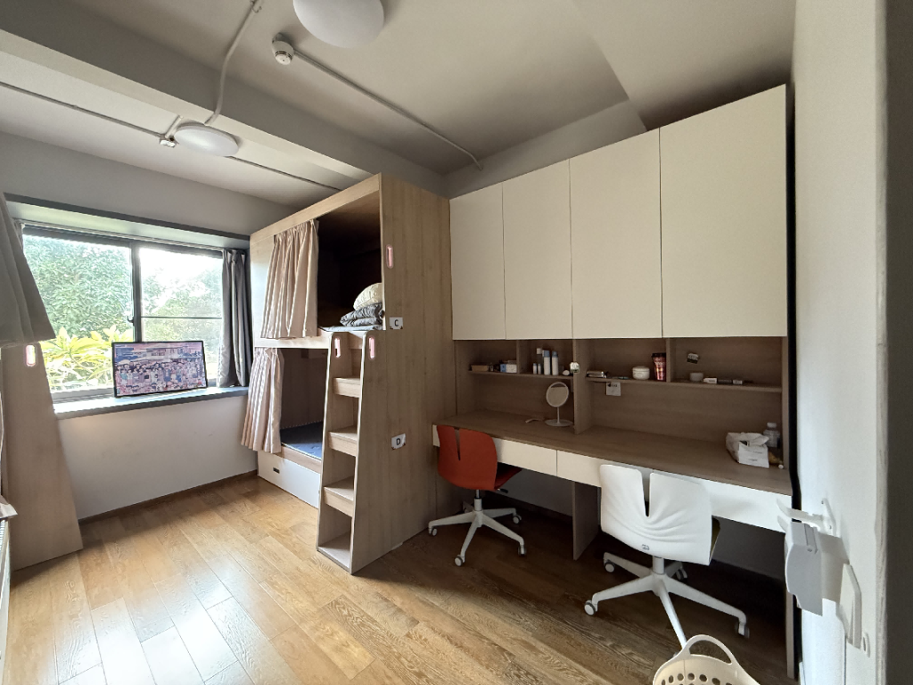 • 每間男生宿舍都會配有獨立的衛生間和沐浴間,衛生間與沐浴間設置在宿舍門口,把睡眠空間與活動空間明確區分開,最大程度減少噪音。